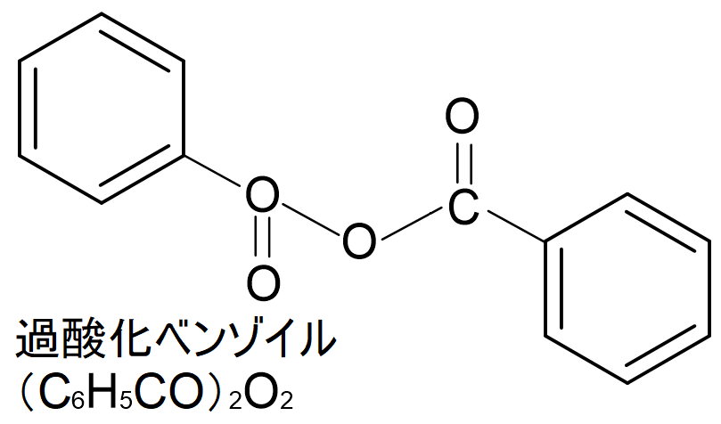 | 有機過酸化物 | 過酸化ベンゾイル | 1.3 | 103℃~105℃ | - | 125℃ | - | ・強い酸化作用がある ・無臭 |